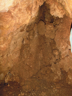 Début d'agrandissement du P3 impénétrable (suite du P2 sous la coulée). 10 pailles pour commencer puis perçage + marteau + burin dans un argile calcité et compact qui résiste. Vraiment pénible !